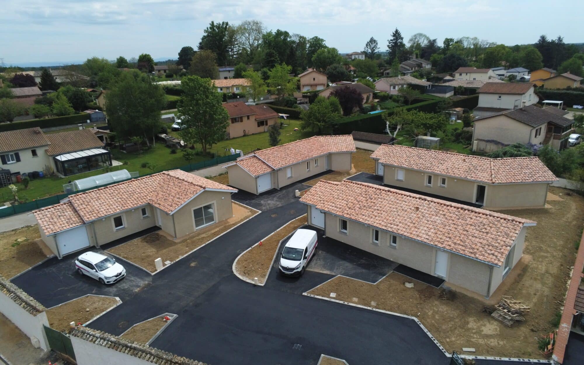 Réalisation sur la commune de Chaneins de 4 villas plain-pieds avec 3 chambres, buanderie et garage attenant.